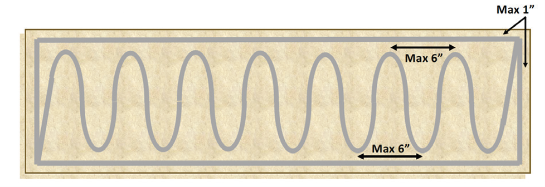 - No more than 6” distance from peak to peak in serpentine
