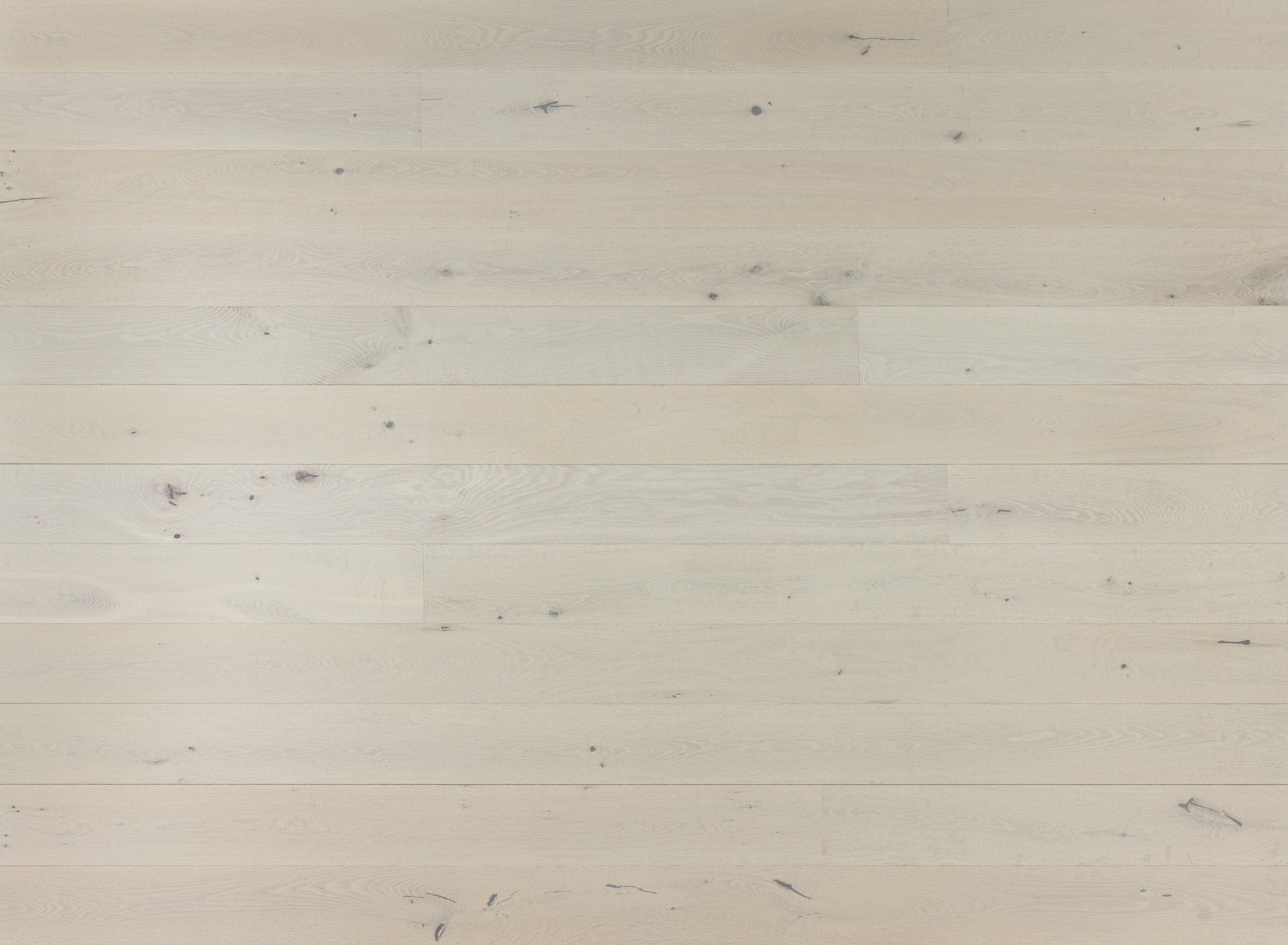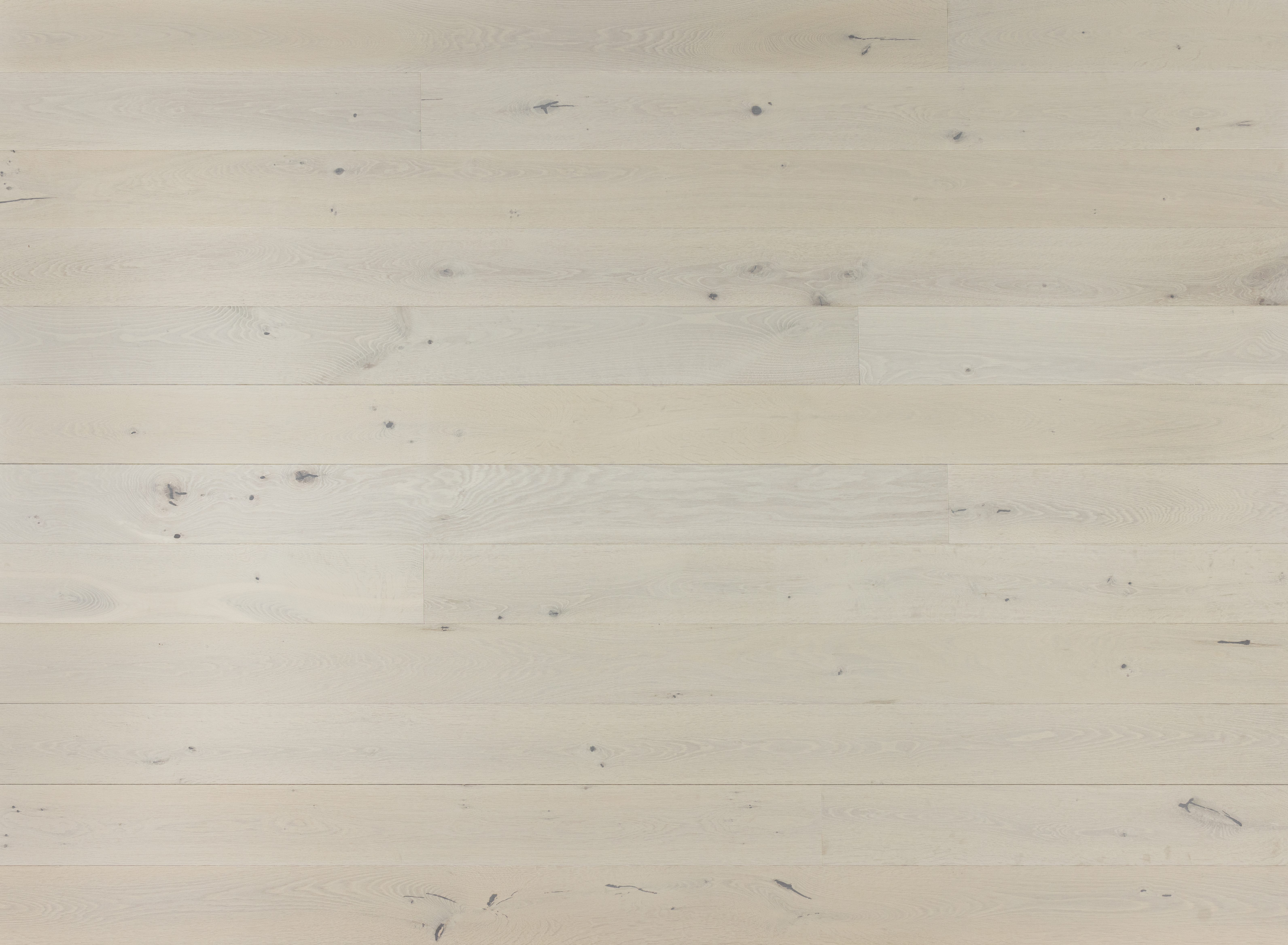 A multi layer extremely white floor with oak undertones and grain definition.